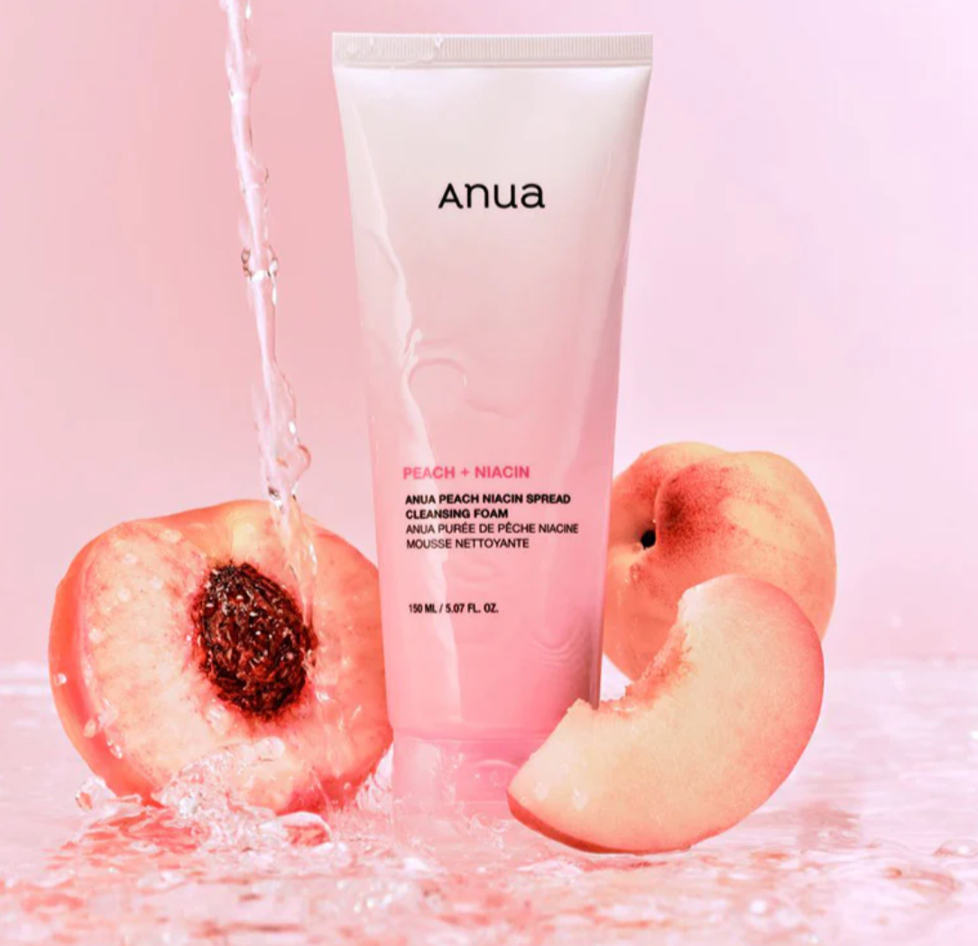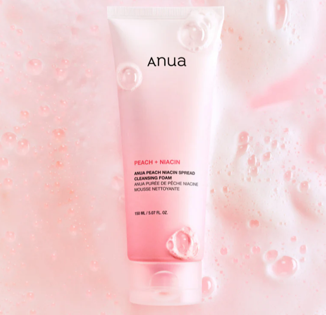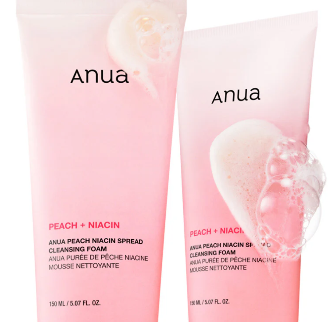 Anua Peach Niacin Spread Cleansing Foam is a gentle daily face cleanser formulated with peach extract and niacinamide to remove sunscreen, excess oil, and impurities while brightening the complexion, refining pores, and hydrating the skin without stripping.
